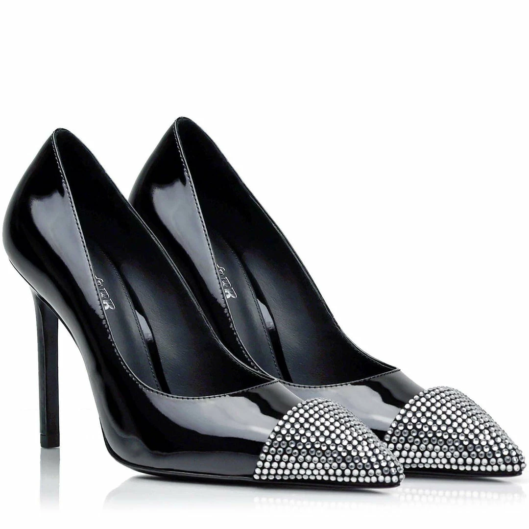 Subtle but fierce, these are a real showstopper. This pair is handcrafted in black patent leather and has a 3D point that is bedazzled in 322 detailed crystal stones. The pump has a strong fierce silhouette with a 100mm heel. They are perfect for business or to hit the night.