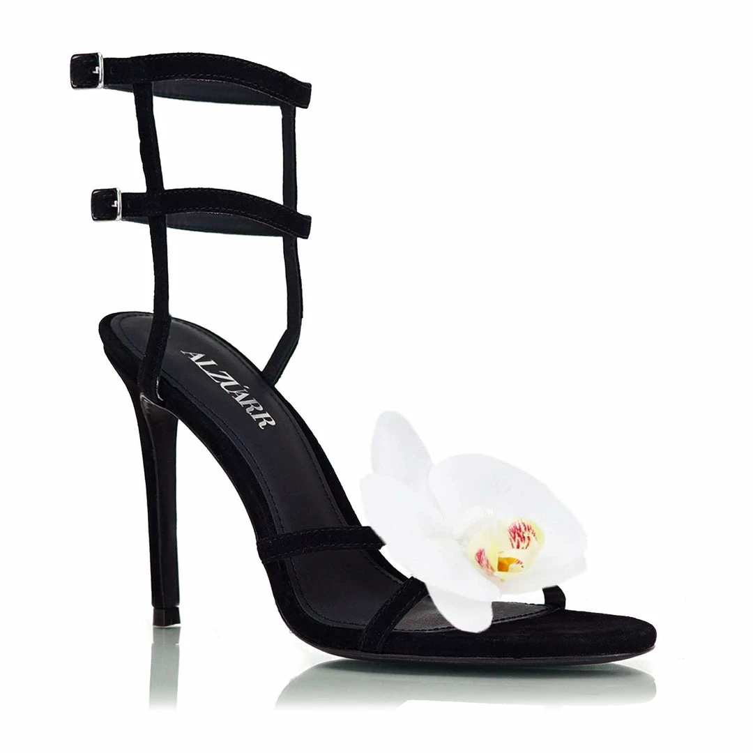 The classic Muriel is part of the Alzúarr signature orchid collection and is beautifully made in Italy. This pair has a romantic and classic silhouette and has two straps that are gently wrapped around the ankle and are made from soft black suede. This is all set on a 100mm high heel. To make it complete, a delicate white orchid is added on the front straps that finish the shoe perfectly. Did you know that the Alzúarr signature orchid collection is inspired by the mother of designer Zeynep Dag. She thinks it’s the most beautiful flower in the world, which makes it her absolute favorite!