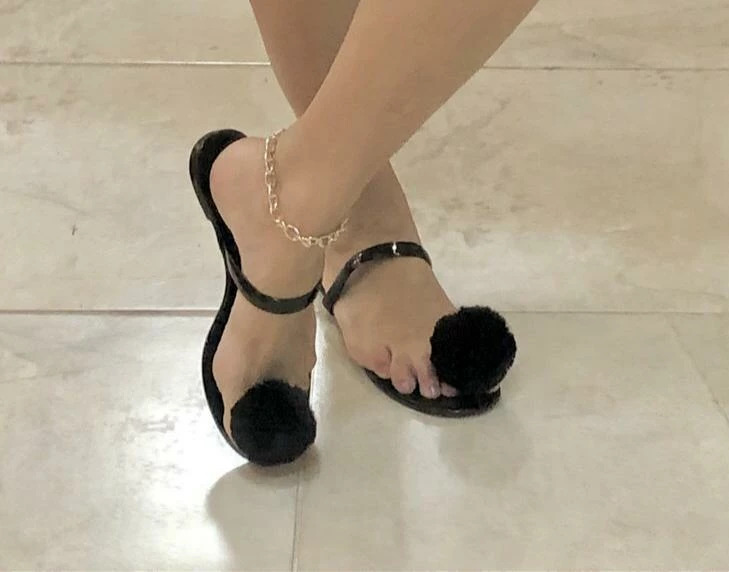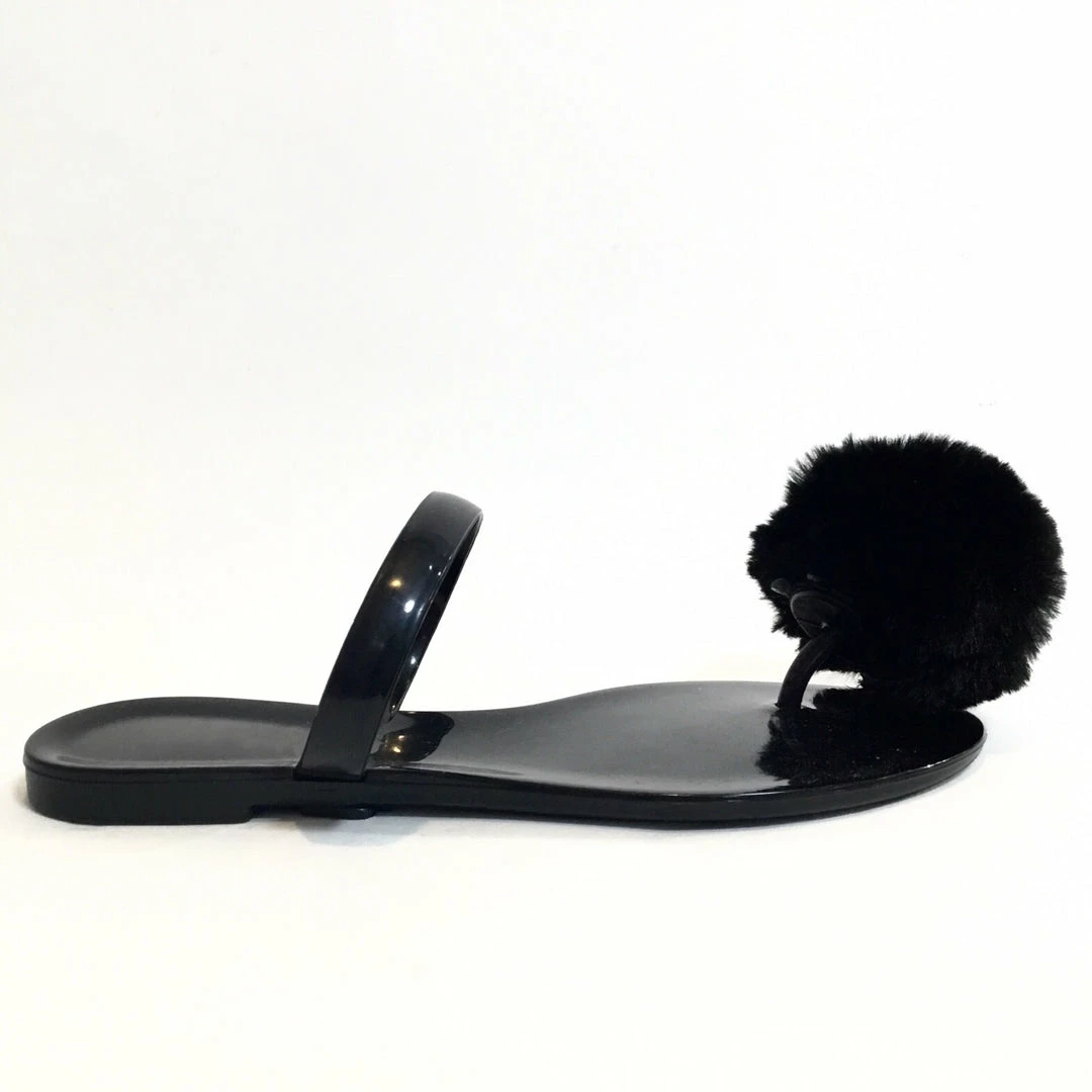 Fabulous Shoes Black Pom Poms Sandals