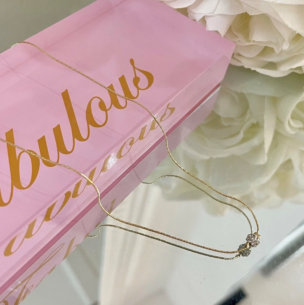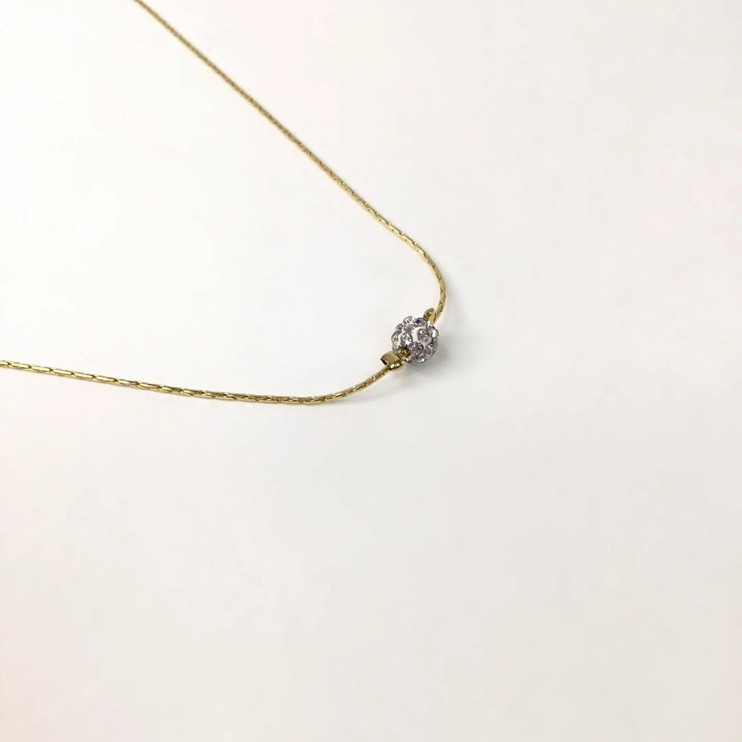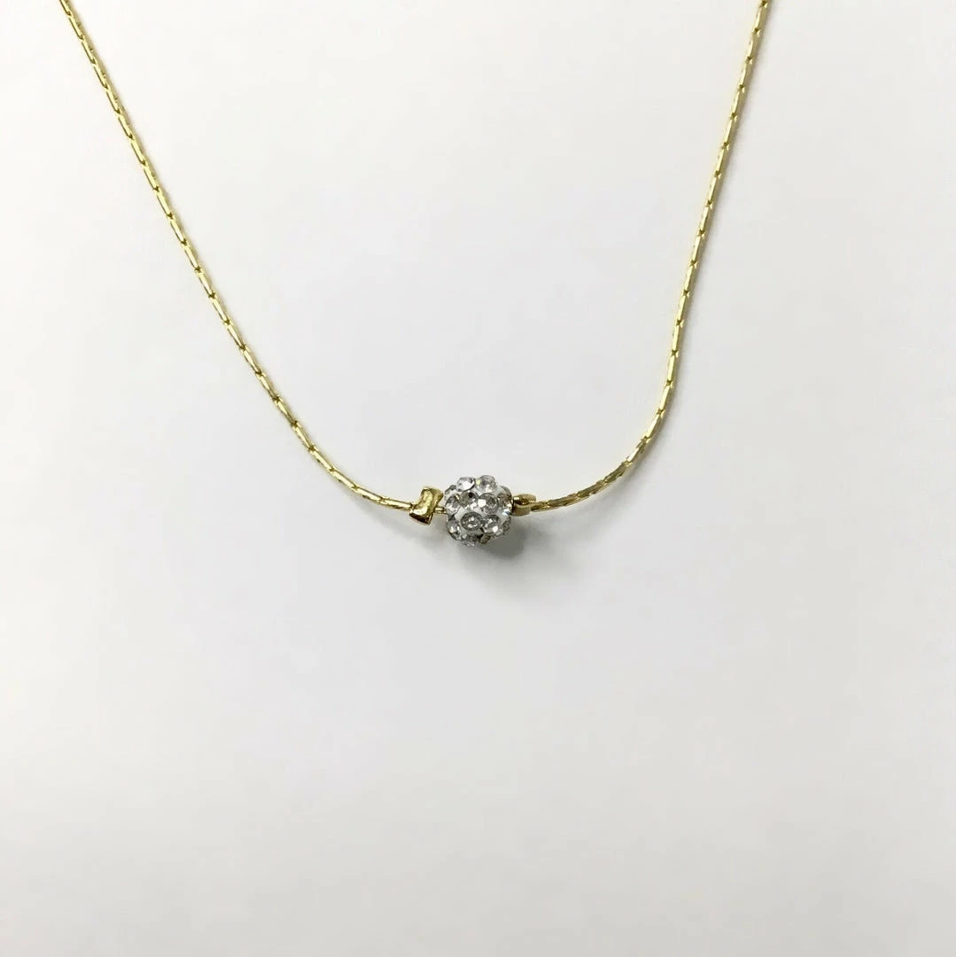 Gold necklace with a crystal sparkly ball