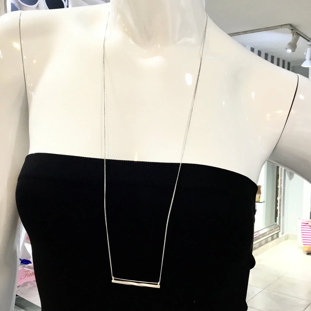 Silver necklace with a swirl stick charm